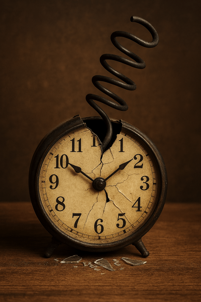 At Stage VIII, we deliver the coup de grâce. The poem is no longer a poem—it is a rhyming explanation of why broken clocks make people think about death. The transformation is complete.